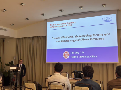 刘君平研究员率队参加了此次大会,并做了大会特邀报告“Concrete-Filled Steel tube technology for long span arch bridges: a typical Chinese technology”,向国外专家学者介绍了中国原创的的钢管混凝土拱桥和钢管混凝土美兰拱技术,受到与会人员的热烈欢迎。同时,随行博士研究生何福云、杨倩和杨意图分别做“Ultimate bearing capacity of CFST Melan arch”、“Numerical Analysis of Bearing Capacity for Steel Tube-Reinforced Concrete (STRC) Short Columns Incorporating Double Initial Stresses”、“Numerical analysis of a steel truss web-UHPC composite arch bridge considering construction stages”的分会场报告。