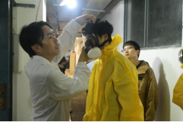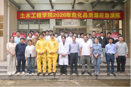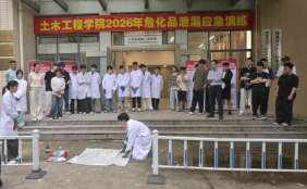 在水利馆102实验室开展危化品泄漏暨消防应急演练。院长助理袁辉辉、赖元文,办公室主任李欣欣,实验中心主任程浩德及相关实验室研究生参加演练。