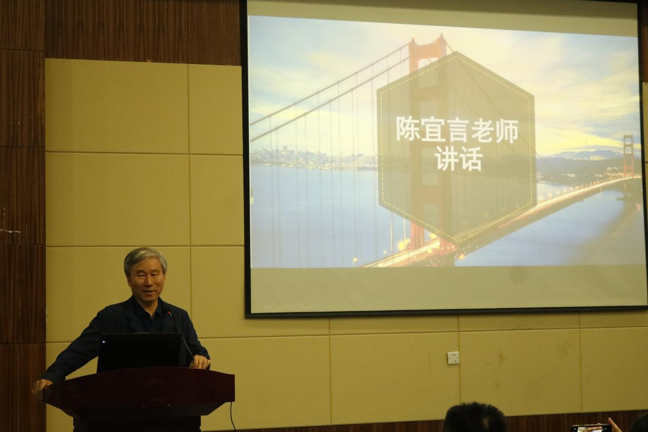 比赛尾声,厦门市市政工程设计院有限公司李贞治副总经理从自身的学习经历,讲述了福大桥梁专业的历史,并寄语母校桥梁专业发展越来越好,桥梁大赛越办越好!并对本次的参赛作品和参赛选手表示高度认可,同时鼓励学弟学妹们大胆创新,多创作一些地标性桥梁建筑。大赛一等奖团队成员代表张恒、潘迦南分别从设计选题、团队协作、参赛经验、导师指导、参赛平台等多个角度做参赛经验分享。最后由陈宜言大师致闭幕词,他着重讲述了原创性设计的重要性,鼓励地标性建筑的设计,同时强调了汇报答辩时陈述表达能力的重要性!并寄语福大学子在桥梁建设中大放光彩!